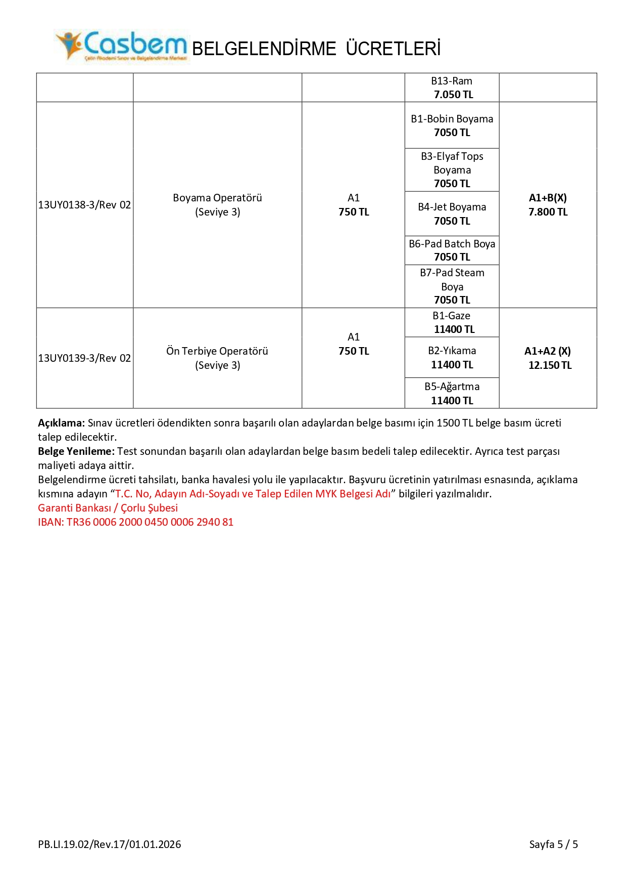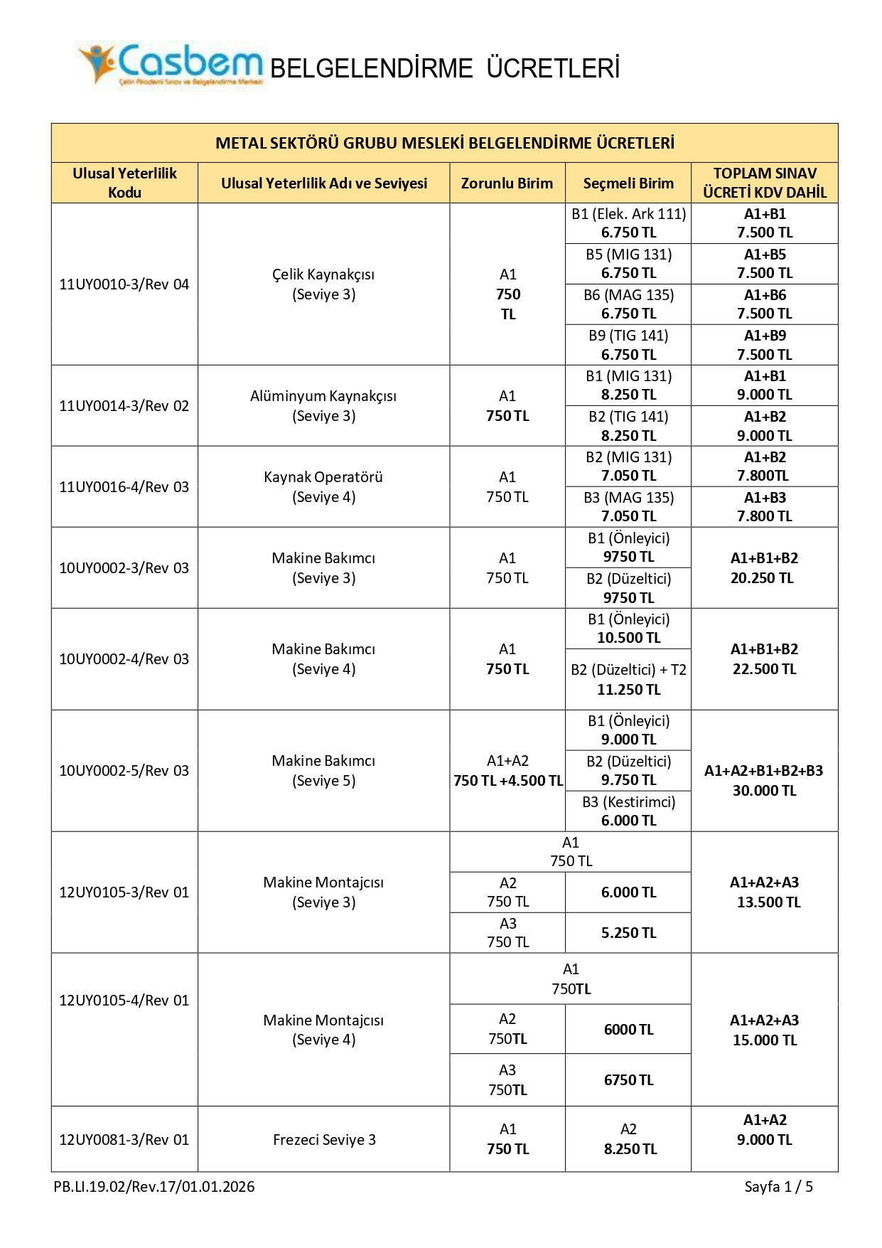 3-Farklı bir meslekten ikinci belge alma durumunda, belgenin yeniden basılmasını gerektiren hallerde ve belge yenileme de ayrıca 1000 TL Belge Basım Ücreti alınmaktadır.