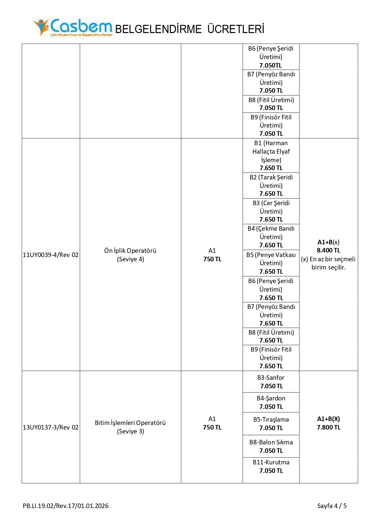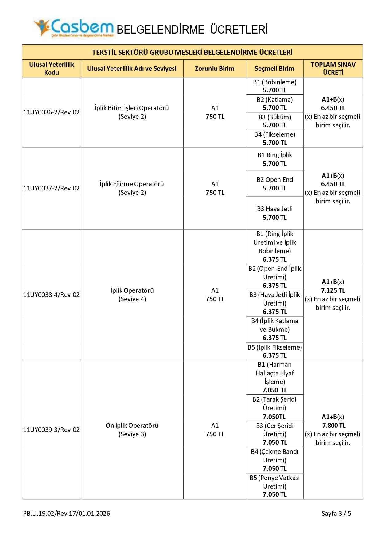 PB.LI.19.02 Sınav Ücretleri Rev17